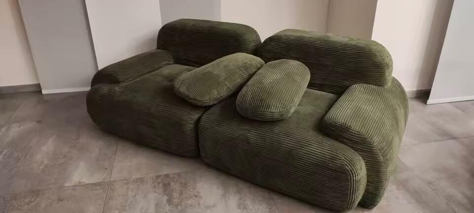 Sa conception modulaire permet d’adapter facilement la configuration du canapé selon votre espace. Aucun montage n’est nécessaire : il suffit de déballer les modules et de les tapoter légèrement pour qu’ils retrouvent leur forme optimale.