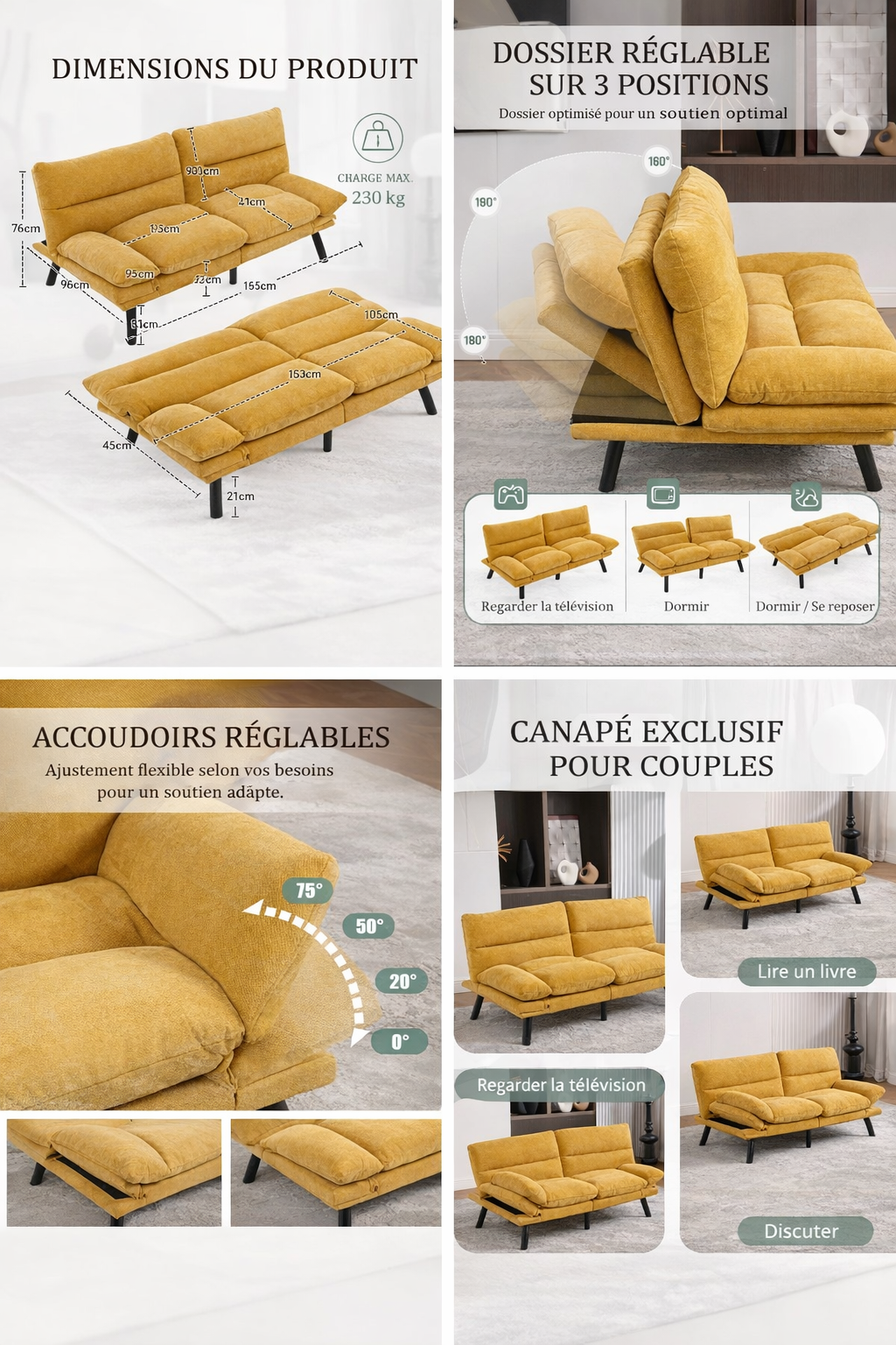 🛏️ Canapé-lit convertible & positions multiples