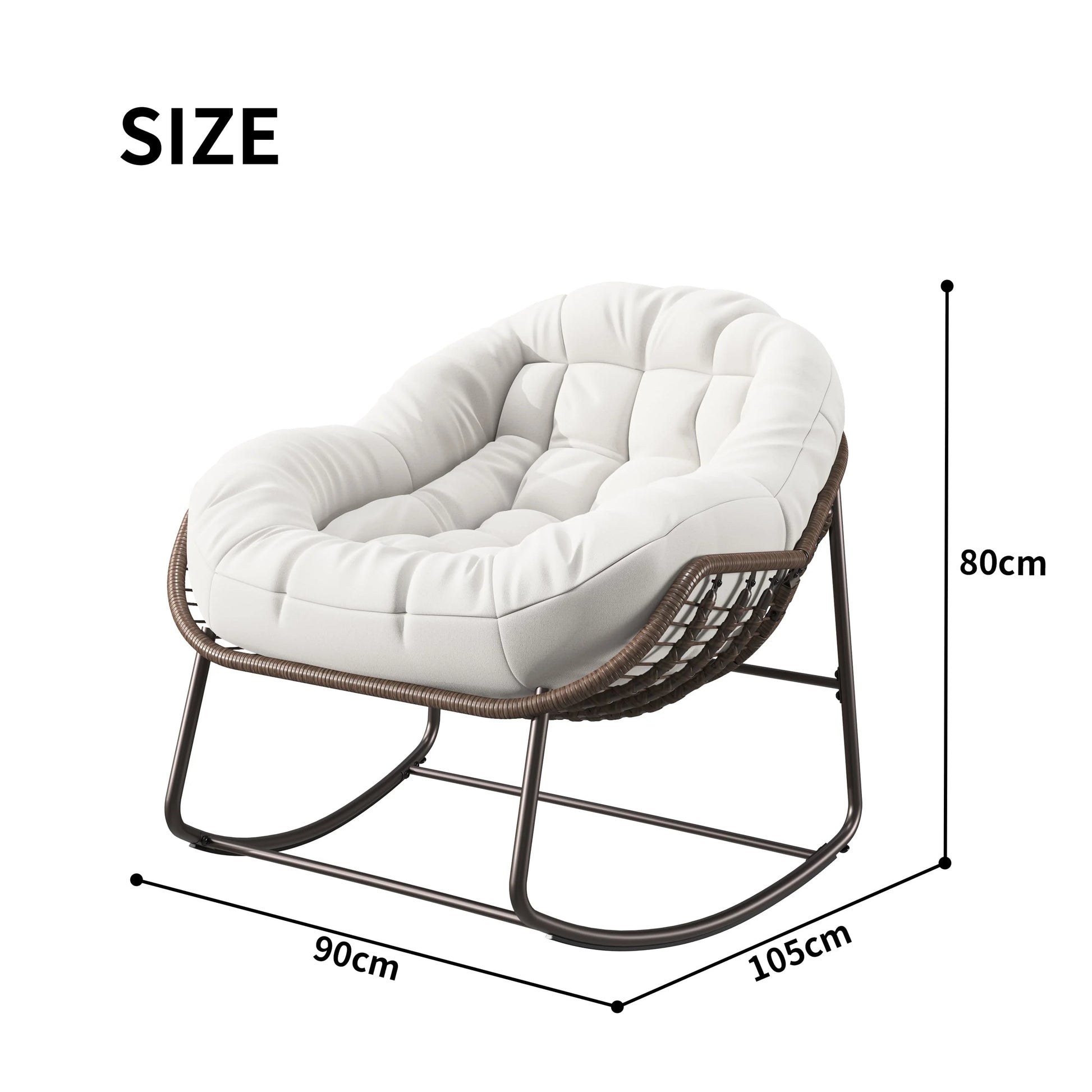 Grâce à son design ergonomique et son coussin généreusement rembourré, ce fauteuil à bascule offre un confort enveloppant idéal pour se relaxer, lire ou simplement se laisser bercer. Parfait pour se détendre sans effort dans le salon, la chambre, le balcon ou le jardin.