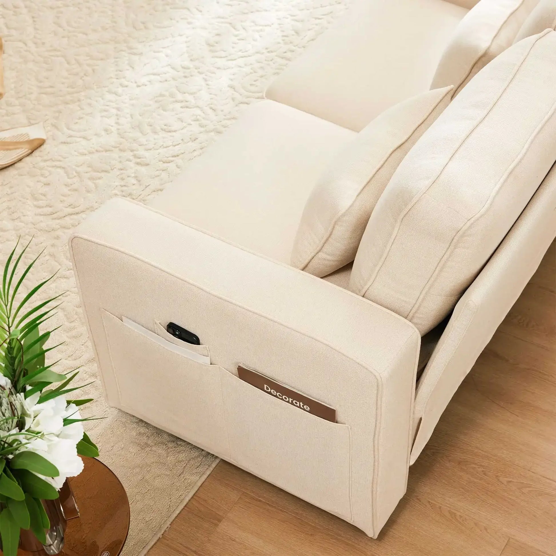 - Poches latérales intégrées sur les accoudoirs pour téléphones, télécommandes et magazines