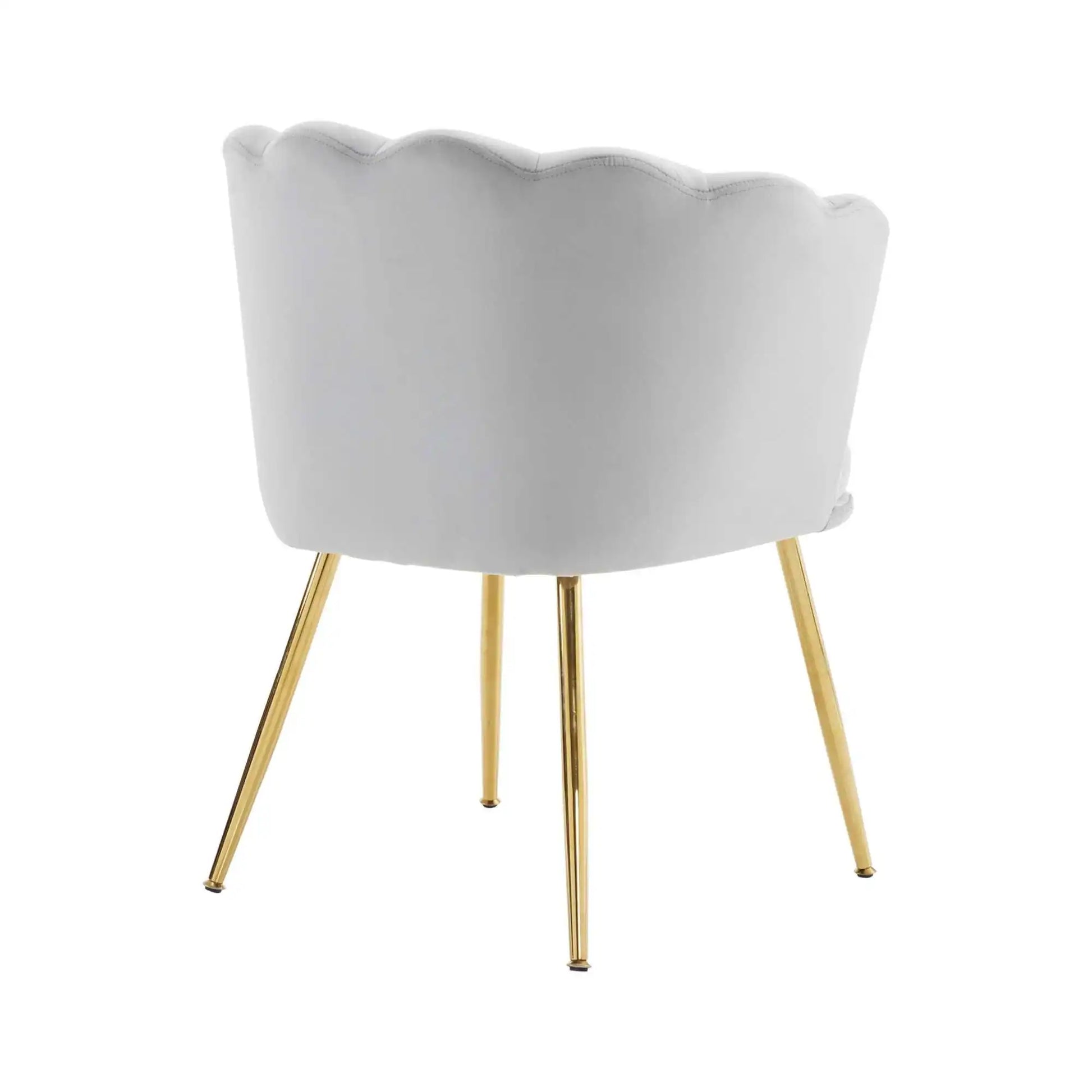 Avec sa forme coquillage élégante, son capitonnage rainuré et ses pieds métal finition dorée, ce fauteuil apporte une touche raffinée tout en offrant une assise douce et enveloppante.